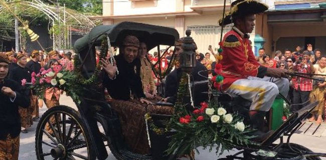 Sementara itu, Bobby-Kahiyang yang dikawal para Paspampres berpakaian adat Solo terus menebar senyum dan lambaian tangan ke arah warga.