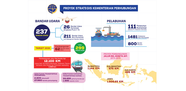 Fokus pembangunan infrastruktur tahun 2015-2019 yaitu penyediaan pelayanan dasar, infrastruktur yang mendukung sektor unggulan melalui pengembangan konektivitas tol laut dan antar moda, dan infrastruktur perkotaan melalui pembangunan angkutan massal berbasis jalan, rel dan intermodal, meningkatkan kapasitas dan kualitas jaringan jalan perkotaan dan mengembangkan transportasi perkotaan yang berkelanjutan.