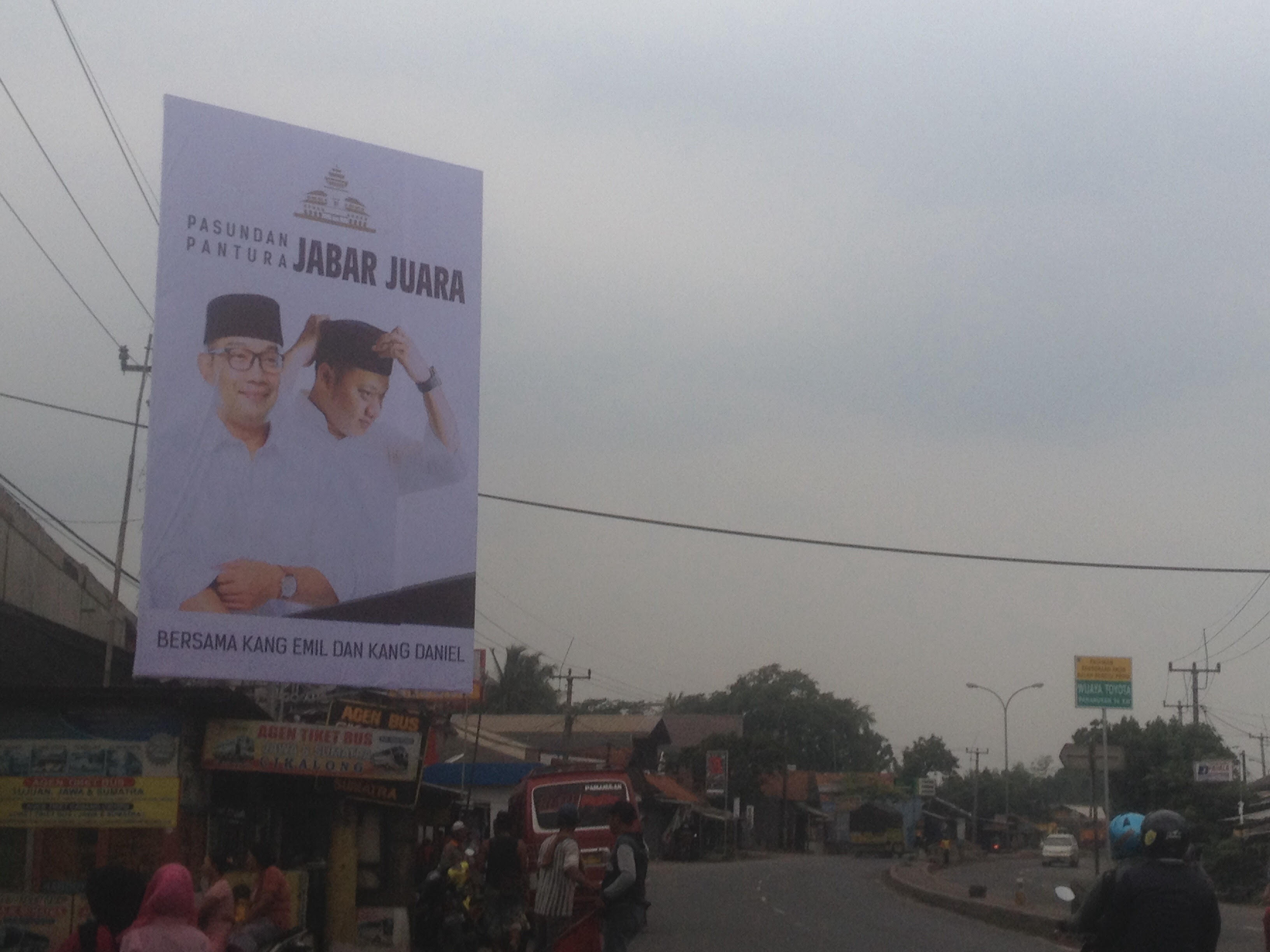 Baliho bakal calon gubernur Jawa Barat, Ridwan Kamil bertebaran di Jalur Pantura, Karawang. Baliho bergambar Ridwan Kamil dan Daniel Mutaqin itu terpasang di tempat-tempat strategis. Baliho bertuliskan slogan Pasundan Pantura Jabar Juara.