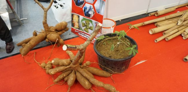 "Ubi ini merupakan proses persilangan antara ubi karet dengan ubi yang bibit unggul jenis raksasa," ujar peserta asal Pekanbaru, Pandapotan di arena Pameran Rakyat Rakornas Tiga PDIP di ICE BSD, Minggu (17/12).