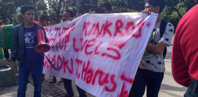 Dengan membawa kain spanduk dengan coretan cat semprot, mereka menuntut agar Gubernur dan Wakil Gubernur DKI Jakarta bertindak keras menutup semua tempat hiburan yang menjadi lokasi peredaran narkotika dan obat terlarang.