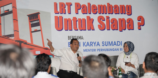 Begitu kata Menteri Perhubungan Budi Karya Sumadi saat menjadi salah satu pembicara dalam forum diskusi Indonesia Marketing Association "LRT Untuk Siapa" di The Pitstop, Palembang, Sumetera Selatan, Sabtu (23/12).