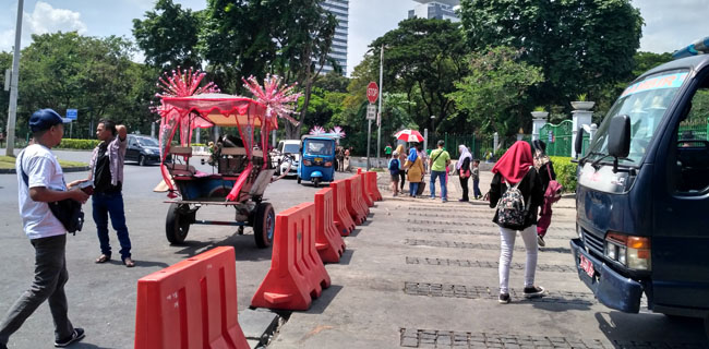 "Dari sini (Silang Monas Tenggara) ke pintu Monas (IRTI), terus balik lagi ke sini Rp 50 ribu. Lumayan lah hasilnya banyak juga. Daripada kerja di pabrik belum tentu sehari dapat Rp 500 ribu," bebernya.