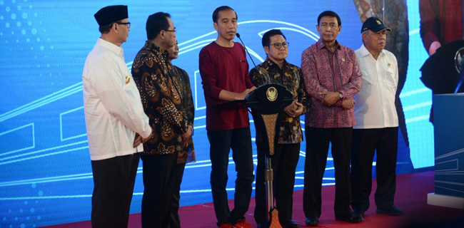 Bersama Kepala Negara tampak Menko Polhukam Wiranto, Menteri PUPR Basuki Hadimuljono, Menteri Perhubungan Budi Karya Sumadi, Menteri BUMN Rini Soemarno dan sejumlah pejabat lain.