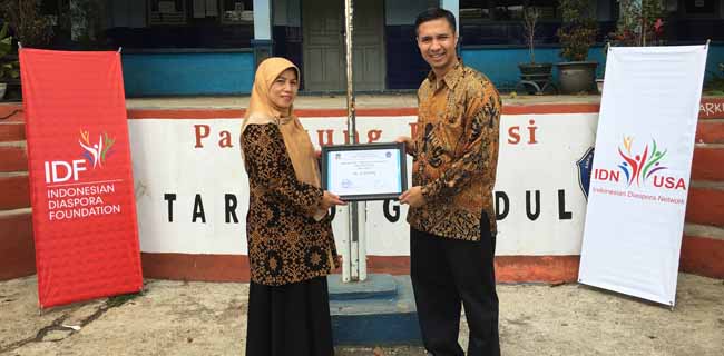 Kepala Sekolah SMPN 5 Tarogong Kidul, Ani Rosyani berterima kasih atas sumbangan dari IDF dan IDN USA.