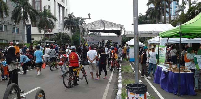 Aksi bersih sampah ini dimulai dari pukul 06.30 WIB masih dipadati pengunjung yang membubuhkan tanda tangan di selembar kain putih sebagai dukungan bersih Jakarta.