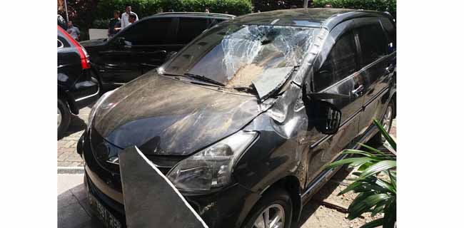 Guncangan terasa kuat beberapa detik hingga membuat satu unit mobil Toyota Avanza milik anggota Bareskrim Polri rusak tertimpa marmer dari material gedung Kementerian KKP.