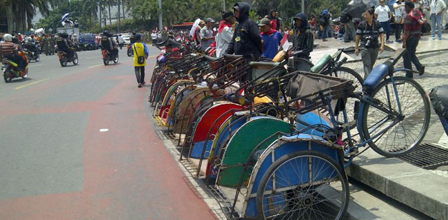 "Kemudian kajian ekonomi. Kita tahu bahwa kalau becak ini, mohon maaf saja, kalau strata bawah bagaimana kalau ditingkatkan kehidupannya agar lebih bagus," papar Halim.
