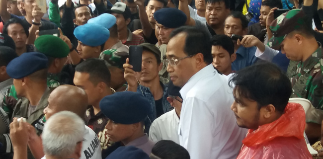 Mantan Dirut Angkasa Pura II itu sempat menemui massa yang menuntut pembatalan Peraturan Menhub PM.108/2017 tentang Penyelenggaraan Angkutan Orang Dengan Kendaraan Umum Tidak Dalam Trayek. Sekitar pukul 16.30 WIB, ia hanya sekitar 10 menit menemui demonstran, dekat gerbang masuk Gedung Kemenhub.