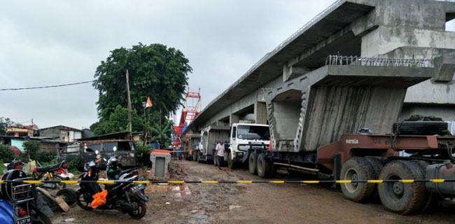"Mungkin ini kecelakaan kerja ya. Kondisi gerimis lici mungkin pas didorong meleset karena licin terus menimpa pekerja di bawah," kata Camat Jatinegara, Abu Bakar kepada wartawan.