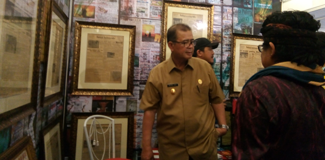 Wakil Gubernur Sumatera Barat, Nasrul Abit, mengunjungi stan sejarah literasi media dalam Pameran Media di Gelanggang Olahraga Agus Salim, Kota Padang, Sumbar, Senin (5/1). Pameran Media merupakan bagian dari rangkaian kegiatan Hari Pers Nasional 2018 di Padang yang puncaknya akan dilaksanakan pada 9 Februari. Presiden Joko Widodo dijadwalkan hadir dalam puncak perayaan itu. Ahmad Kiflan Wakik/RMOL