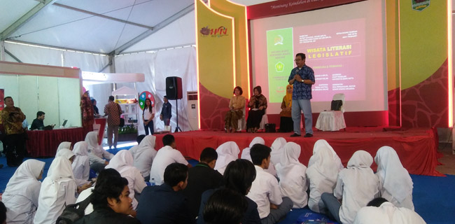 Kantor Berita Politik RMOL Dar Edi Yoga dalam diskusi 'Wisata Literasi Legislatif' di arena Pameran Hari Pers Nasional 2018, GOR Agus Salim, Kota Padang, Sumatera Barat, Selasa (6/1).