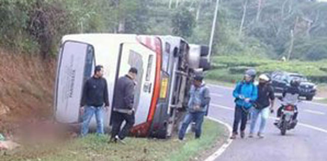 Kabar yang dihimpun redaksi, bus pariwisata yang terbalik membawa warga Kampung Legoso, Kelurahan Pisangan Timur, Kecamatan Ciputat, Tangerang Selatan, Banten. Bus mengalami kecelakaan di jalur pulang dari pemandian air panas Ciater.