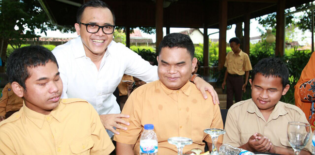 Seperti tamu kehormatan yang biasa datang ke Banyuwangi, anak-anak disabilitas ini duduk satu meja bersama Anas. Saat datang, mereka satu persatu disambut Anas sambil diminta mengenalkan diri.