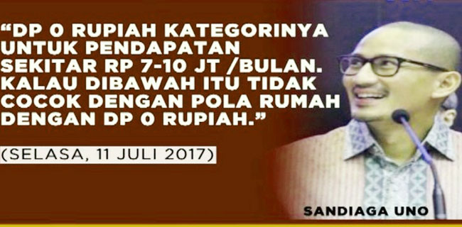 Program ini menjadi salah satu dari 23 janji kampanye Anies-Sandiaga saat Pilkada DKIlalu. Saat itu keduanya berjanji akan membuat rumah DP0 rupiah untuk kalangan tidak mampu dan dalam bentuk rumah tapak bukan rumah susun. ***