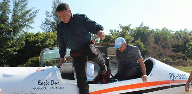 Gubernur Irwandi mengendalikan Pesawat Aero Shark pada Sabtu (17/2). Ia sempat dikabarkan mengalami kecelakaan namun kabar itu segera mendapat bantahan.