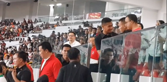 "Keduanya menonton dengan rileks, sangat informal serta akrab. Presiden menyampaikan selamat dan menyalami Anies saat Persija mencetak gol," kata Bey.