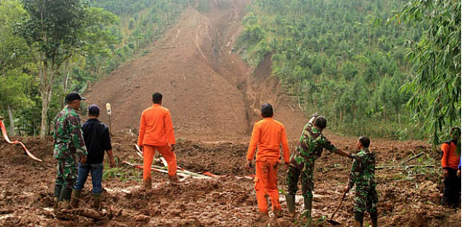 "Tim Basarnas Bandung sudah terjun ke lokasi longsor kawasan hutan produksi milik Perhutani di Desa Pasir Panjang, Kecamatan Salem, Brebes. Tim kini di lokasi sedang melakukan asesment dan pencarian," jelas Joshua kepada wartawan, Jumat (23/2).
