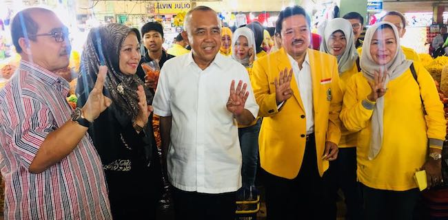 Dalam kunjungan ini, kelima elit Golkar bersama Andi Rachman, sapaan akrab Arsyadjuliandi Rachman, nampak berdialog dengan para pedagang Pasar Bawah.