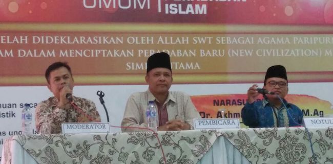 Kuliah umum ini diisi oleh Guru Besar UIN Syarif Kasim, Riau, Ahmad Mujahidin yang memaparkan tentang tema “Simpul-simpul Peradaban Islamâ€. Ahmad Mujahidin menjelaskan bahwa Islam sebagai agama yang sempurna tidak hanya mengatur masalah ibadah kepada Allah saja.