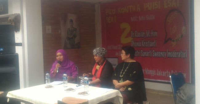 Begitu kata guru bahasa dan penulis puisi esai, Dhenok Kristianti dalam diskusi pro konta puisi esai ke-2, di Yayasan Budaya Guntur, Jumat (9/3).