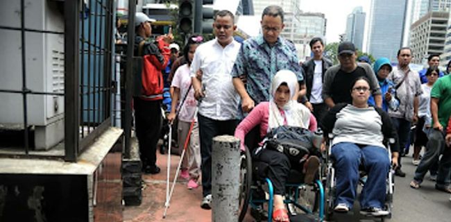Menurut Anies hal itu, ternyata menyulitkan para pengguna kursi roda untuk melintas. Bukan hanya itu, para penyandang tuna netra juga mengalami kesuliltan lantaran ada sejumlah trotoar tidak memiliki ram dan ketinggian jalur pejalan kaki dengan permukaan jalan selisih jauh.