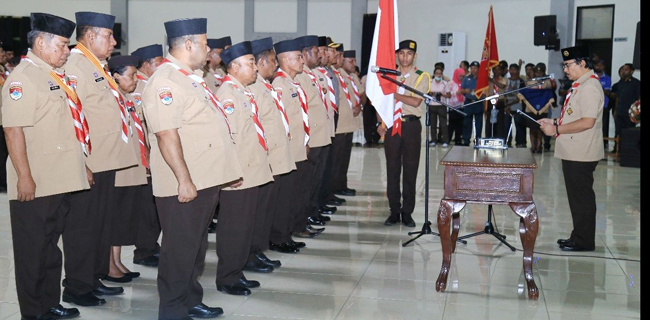 " Jika Presiden Joko Widodo mengatakan kerja, kerja, dan kerja, maka Pramuka mengatakan kerja, bersyukur, kerja, bersyukur," terangnya.