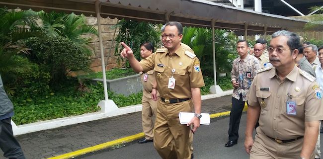 Gubernur DKI Jakarta Anies Baswedan melakukan inspeksi mendadak (sidak) di Hotel Sari Pan Pacific, Jalan MH Thamrin, Jakarta, Senin (12/3) pagi.