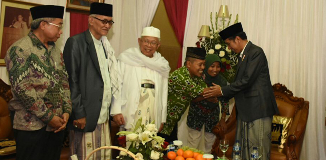 Selain kepada Jokowi, Difabel Blora Mustika juga menyerahkan karya batiknya kepada Kiai Ma'ruf yang juga menjabat sebagai Rais 'Aam PBNU itu.