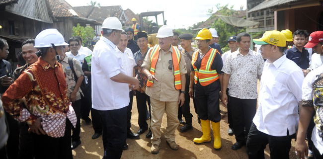 Didampingi Bupati OKU Timur, Kholid Mawardi, Wakil Bupati OKU Timur, FKPD Kabupaten OKU Timur, Kepada Dinas PUBM Provinsi Sumsel, Ucok Hidayat dan Kepala Biro Umum dan Perlengkapan Setda Provinsi Sumsel, Zaki Aslam, Gubernur Alex menyaksikan pengecoran jalan di depan Pasar Gumawang, Kecamatan Belitang Kabupaten OKU Timur.