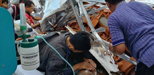 Menurut petugas jaga, berawal satu atap yang ambruk kemudian serentak. Ketika kejadian pasien yang ada di ruang paviliun tak sempat menyelamatkan diri.