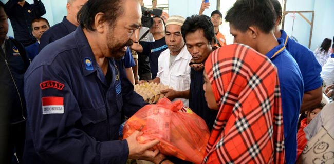Selain meninjau lokasi pengungsian, Surya juga menyerahkan sejumlah bantuan berupa kebutuhan harian kepada para pengungsi.