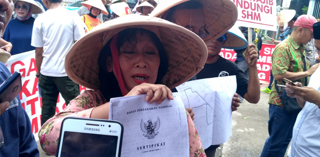 "Ini serifikatnya. Sudah hak milik sejak tahun 1991, dan sertifikasi HGB diterbitkan tahun 2000. Ini ditumpangtindihin. Siapa nih yang bisa bikin gambar ini, siapa kalau bukan BPN," bebernya sembari mengacungkan kopian sertifikat tanah miliknya.