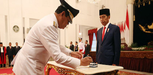 Presiden Jokowi melantik Isdianto sebagai Wagub Kepri, di Istana Negara, Jakarta, Selasa (27/3).