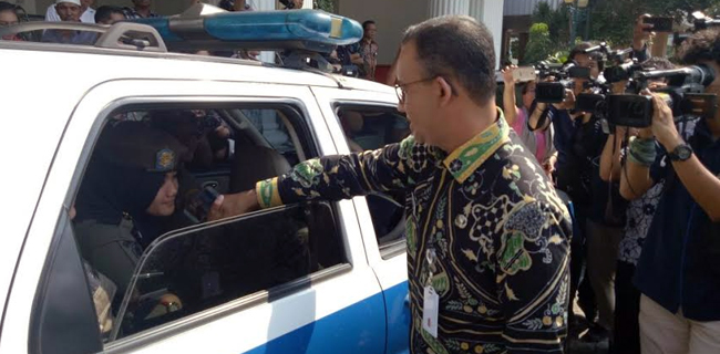 Sebelumnya Anies melepas 30 personel Satpol PP di Balaikota untuk meninjau Alexsis.