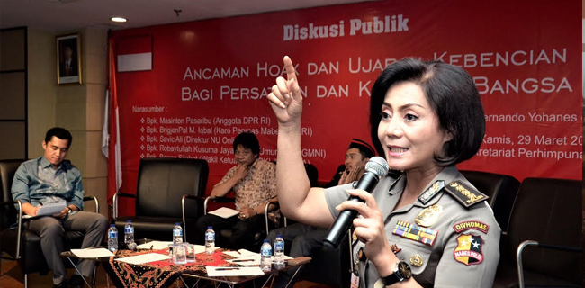 "Jadi, Pak Kapolri semenjak beliau naik ketika melakukan fit and propertest di DPR mengatakan manajemen media sebagai misi utamanya. Beliau sudah meramalkan ini (produksi hoax) akan terjadi dan benar, belum satu tahun beliau jadi Kapolri dan sudah terjadi," kata Sri