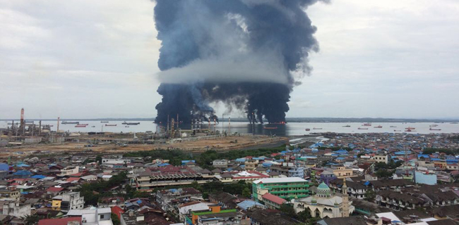 Adapun sumber tumpahan minyak masih belum diketahui. Tumpahan minyak ada sejak Sabtu pagi dan kemudian menimbulkan kebakaran pada pukul 11.00 WITA.