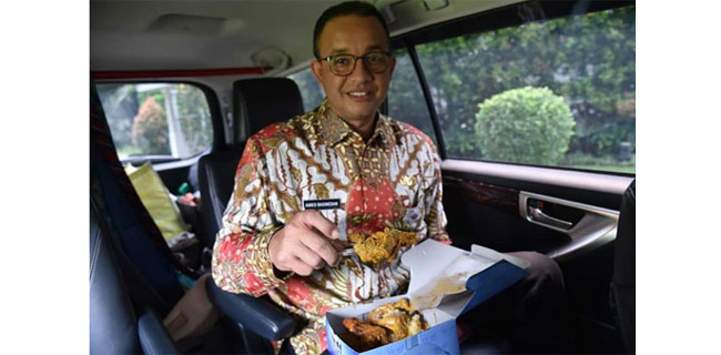 "Hari ini ada dua musrembang di Jakarta Timur dan Jakarta Pusat. Sambil mengejar waktu, makan nasi padang di perjalanan. Rendang-nya enak sekali. Rendang memang enak karena tidak crispy," tulis Anies.