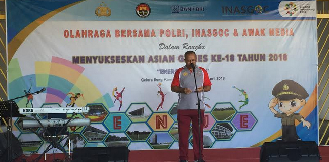 "Saya berharap gelora Asian Games ini dirasakan oleh masyarakat," kata Kadiv Humas Polri, Irjen Pol Setyo Wasisto saat olahraga bersama Polri, Inasgoc dan wartawan di Gelora Bung Karno, Jakarta, Jumat (13/4).