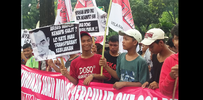 Dalam tuntutan mereka di antaranya soal pemotongan dana program Kartu Jakarta Pintar (KJP) dari Rp 700 ribu menjadi Rp 400 ribu per siswa.