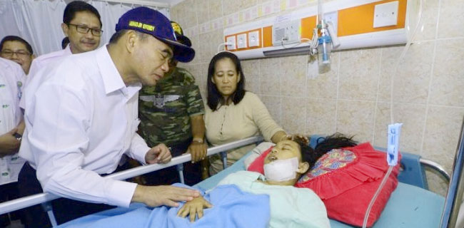 Salah satu korban yang dijenguk Muhadjir, yakni Tri Intan Apriyani (13) di Rumah Sakit Umum Gunung Jati, Cirebon. Siswi kelas VII Sekolah Menengah Pertama (SMP) Negeri 1 Gegesik itu mengalami luka berat lantaran rahang dan tulang pahanya patah, sehingga harus dioperasi.
