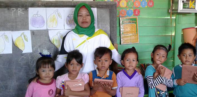 Sudah satu dasawarsa Ibu tiga anak tersebut menjadi guru di PAUD Suway Umpu, sebuah sekolah PAUD yang berada di bekas kawasan Hutan Tanaman Industri yang ada di Tulang Bawang Barat, Lampung. HTI, begitulah masyarakat di sana menyebutnya. Sebuah dusun yang terpisah jauh dari desa lainnya, bahkan dengan desa induknya.