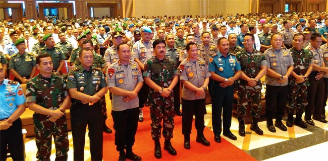 Hal itu merupakan komitmen Panglima TNI, Marsekal Hadi Tjahjanto dan Kapolri, Jenderal Tito Karnavian di hadapan ribuan prajurit TNI dan Polri di Sudriman Grand Ballrom, Jalan Sudirman Nomor 620, Bandung, Sabtu (21/4).