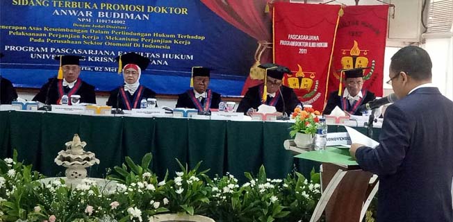 Demikian pemaparan Anwar Budiman dalam disertasinya yang berhasil dipertahankan berjudul "Penerapan Asas Keseimbangan dalam Perlindungan Hukum terhadap Pelaksanaan Perjanjian Kerja: Mekanisme Perjanjian Kerja pada Perusahaan Sektor Otomotif di Indonesia" dalam sidang senat terbuka promosi doktor ilmu hukum di Universitas Krisnadwipayana,Jakarta Pusat, Rabu (2/5).