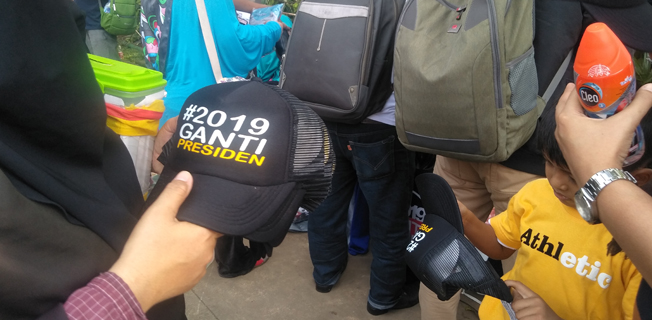 #2019GantiPresiden di depan kawasan Monumen Nasional (Monas), Jakarta Pusat, pagi ini (Minggu, 6/5) dimanfaatkan para pedagang kaki lima untuk mengais rezeki.