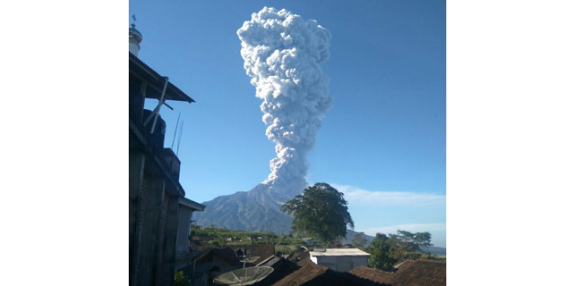 Letusan disertai suara gemuruh dengan tekanan sedang hingga kuat dan tinggi kolom 5.500 meter dari puncak kawah. Letusan melontarkan abu vulkanik, pasir dan material piroklatik.