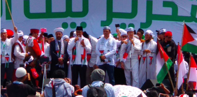 Dari panggung di antara para ulama, Anies menyatakan ratusan ribu umat Muslim yang mengikuti aksi itu mengirim pesan ke dunia bahwa Indonesia sangat konsisten membantu perjuangan rakyat Palestina.