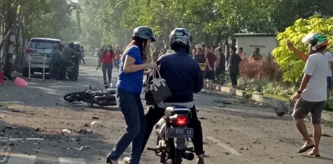 Dari informasi yang didapat, bom di Gereja Santa Maria meledak pada pukul 07.30 WIB. Seorang warganet bernama Yosefina mengunggah foto-foto pasca kejadian bom.