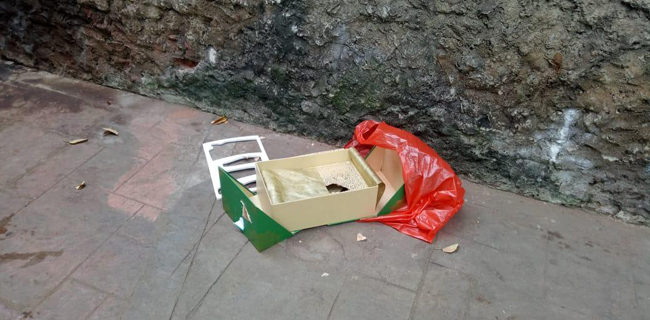Sebelumnya, dua kardus diletakkan seorang perempuan berusia muda di dalam gerobak di dekat Stasiun Palmerah, Jalan Tentara Pelajar, Senayan, Jakarta.