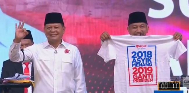 Paslon Asyik pada sesi penutupan debat publik putaran kedua Pilgub Jabar 2018 di Kampus Universitas Indonesia (UI), Kota Depok, Senin lalu (14/5) menuai pro dan kontra. Kala itu, Sudrajat menyampaikan kalimat penutup yang diiringi aksi Syaikhu membawa kaus bertuliskan "2018 Asyik Menang, 2019 Ganti Presiden".